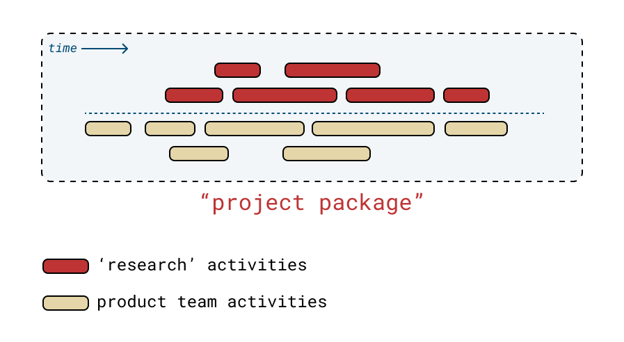 Projects have the sometimes-advantage of decoupling from immediate and ongoing work cycles, as illustrated in Figure 2. There is space for critical thinking and reaching strong conclusions inherent in the project model, separate from the pace of regular product activities.