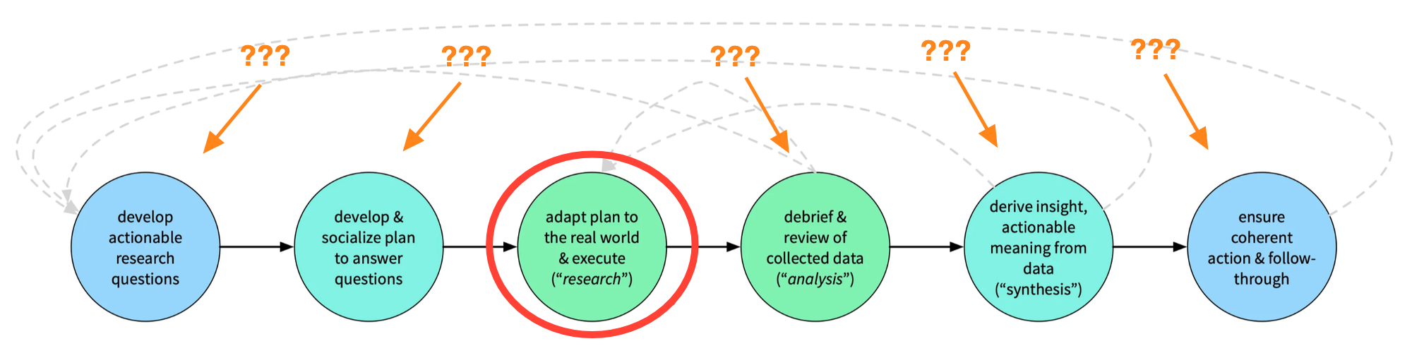 There are special flavors of critical thinking baked into research projects beyond the execution itself: triangulating what to learn, how to gather evidence, assessing validity of our raw input, modeling and reframing what we've learned to highlight implications and opportunities. And, as product teams take the reins — whether eagerly or reluctantly — these supporting activities are the first things to fall through the cracks.