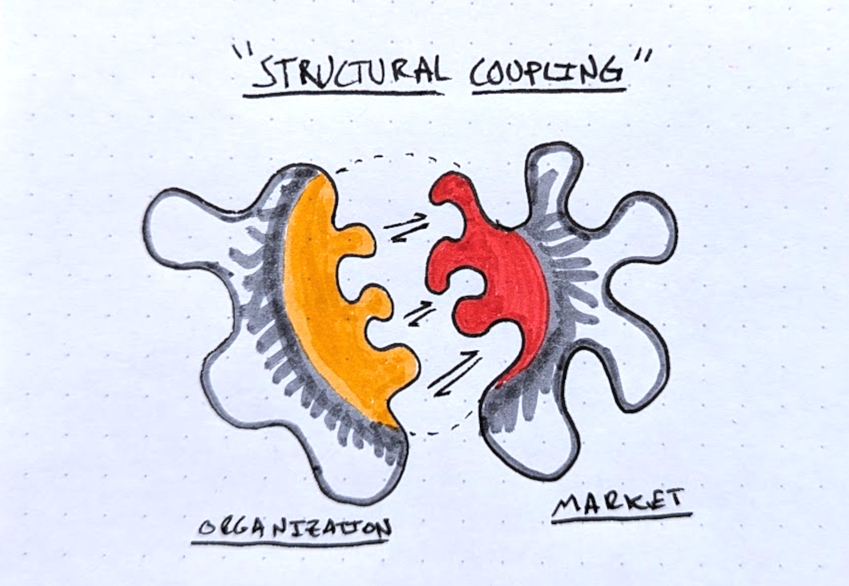 The idea of structural coupling goes further. Our organization, a living system, is not only reshaping itself to fit its market: once there's a mutual fit, the organization is reshaping its market, even as the market reshapes the organization.